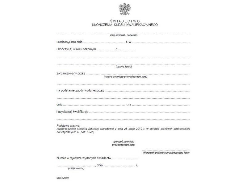 - Wniosek o wydanie duplikatu świadectwa.